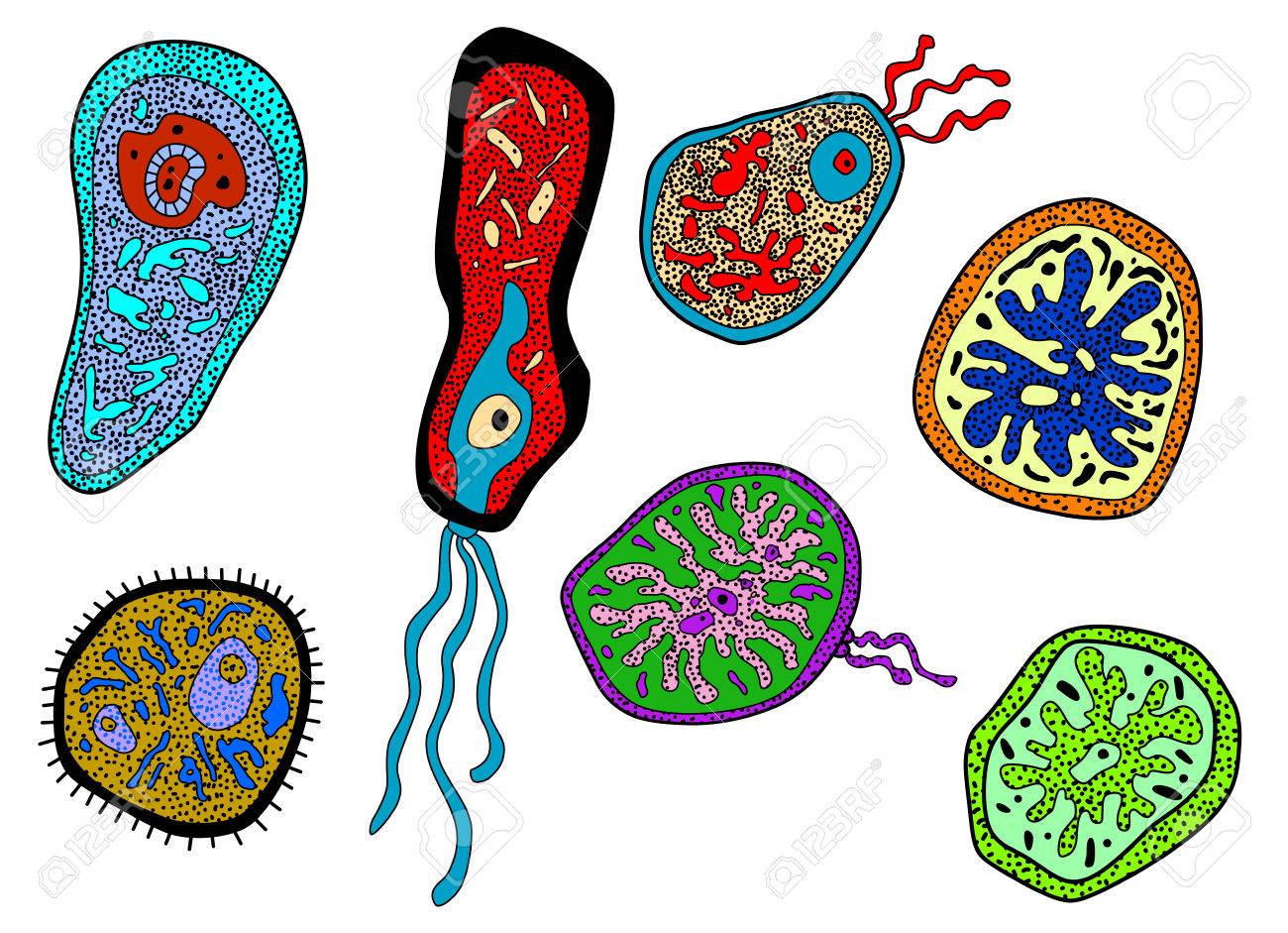 Colorida De Dibujos Animados De Colores Amebas Amebas Microbios Germenes O Microbios Bacillus Formas De Vida Para La Ciencia La Medicina Y La Biologia De Diseno Ilustraciones Vectoriales Clip Art Vectorizado Libre