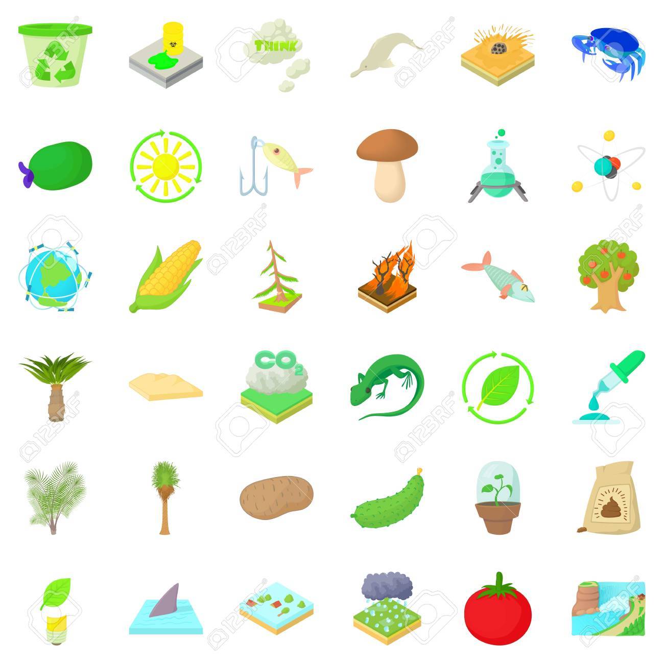 Conjunto De Iconos De Biologia Y Ecologia Estilo De Dibujos Animados Ilustraciones Vectoriales Clip Art Vectorizado Libre De Derechos Image 84171924
