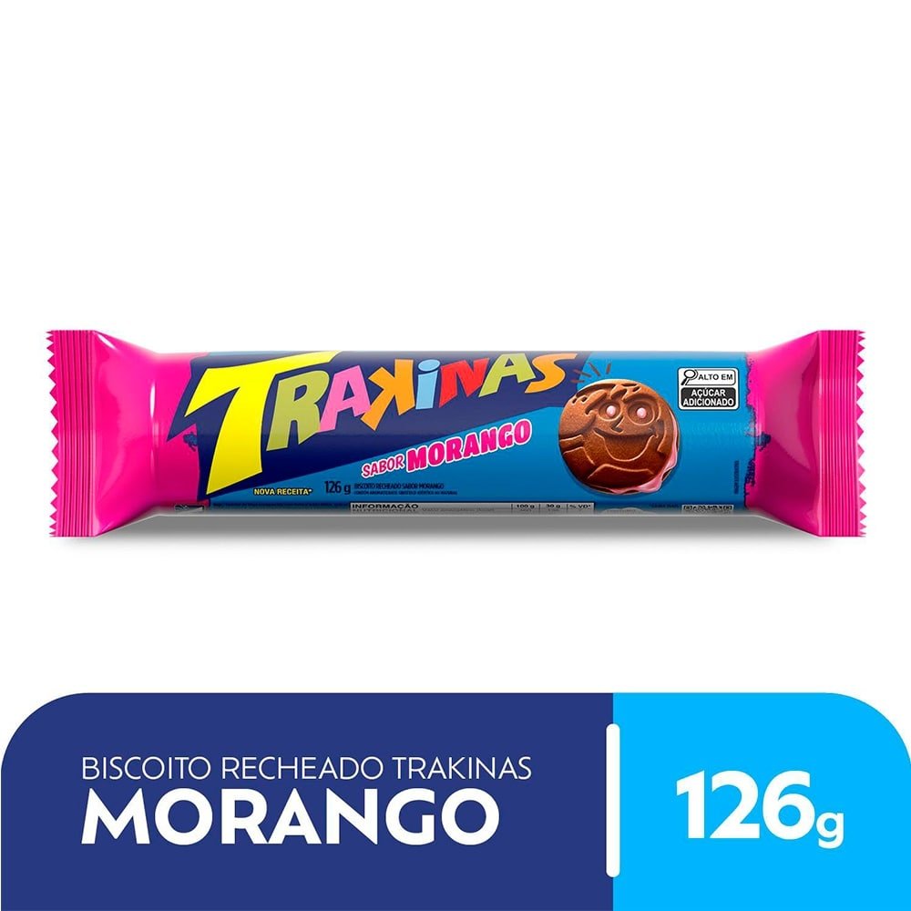 Biscoito Recheado Morango Trakinas 126g Distribuidora Caue