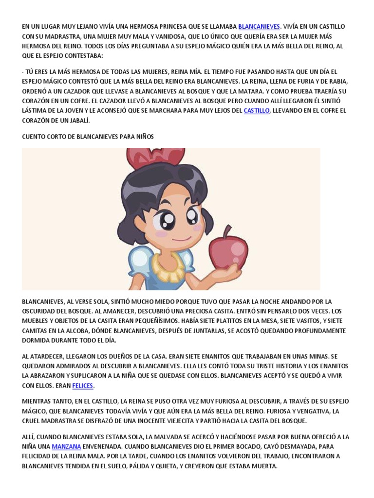 Cuento De Blancanieves Blancanieves Cuentos Infantiles Pdf Cuento Infantiles