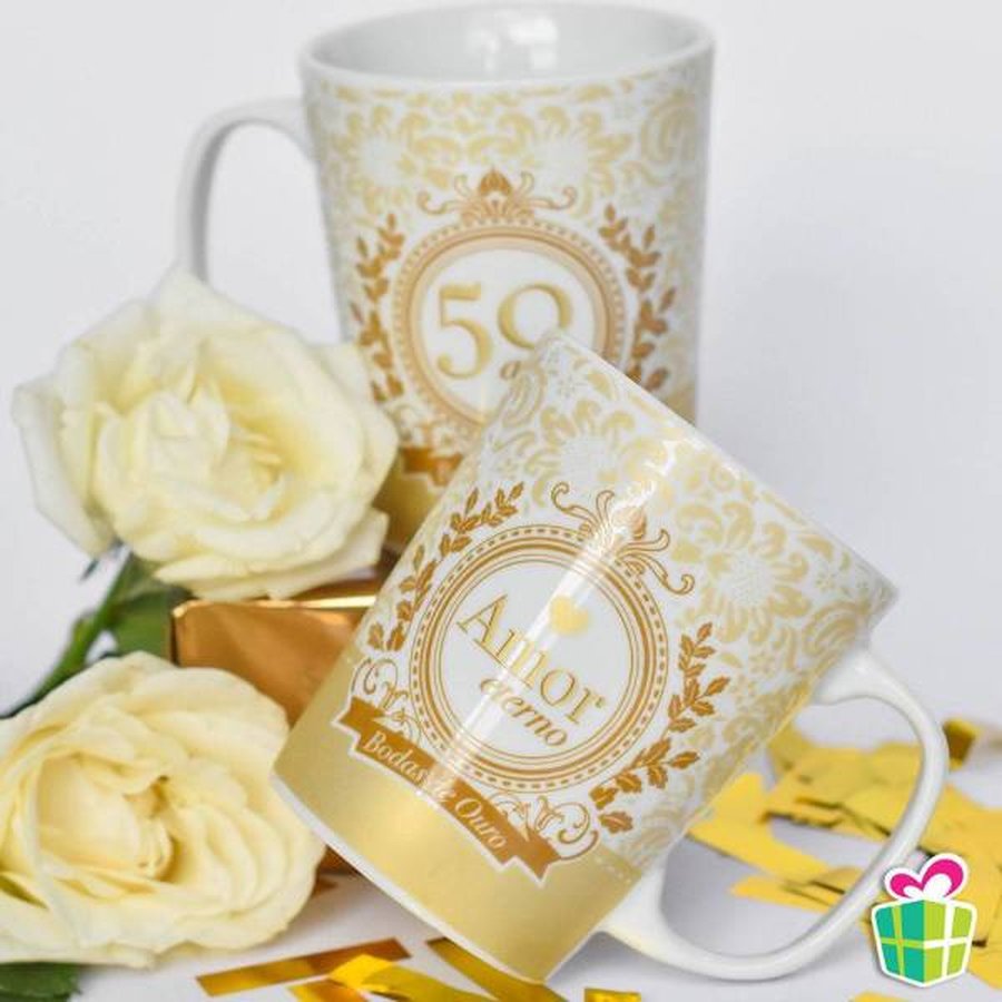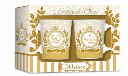 Conjunto 2 Canecas Bodas De Ouro 50 Anos 280ml Presente Madeiramadeira