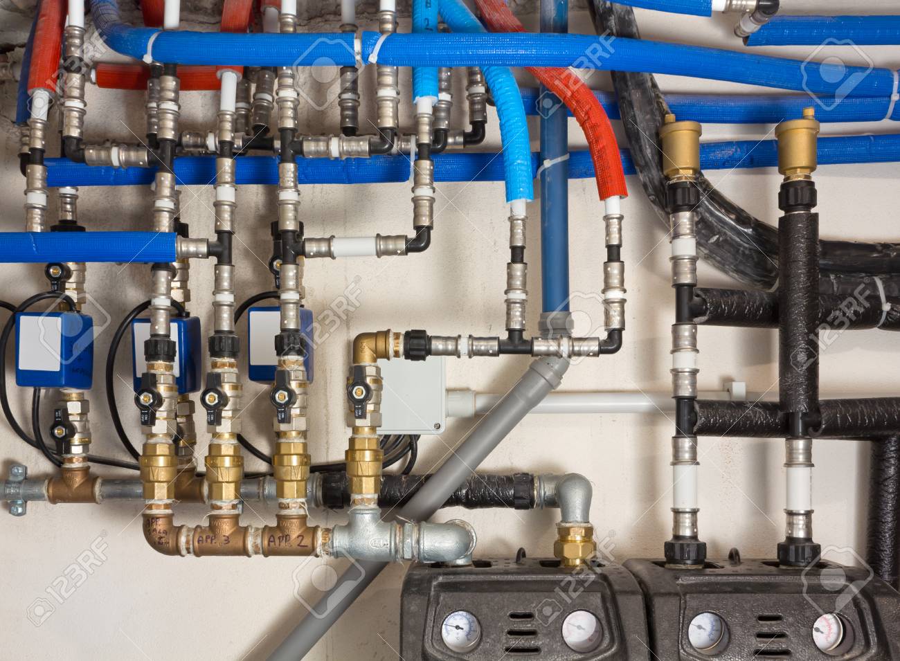 Central Heating And Cooling System Control In A Boiler Room Stock Photo Picture And Royalty Free Image Image 92907629