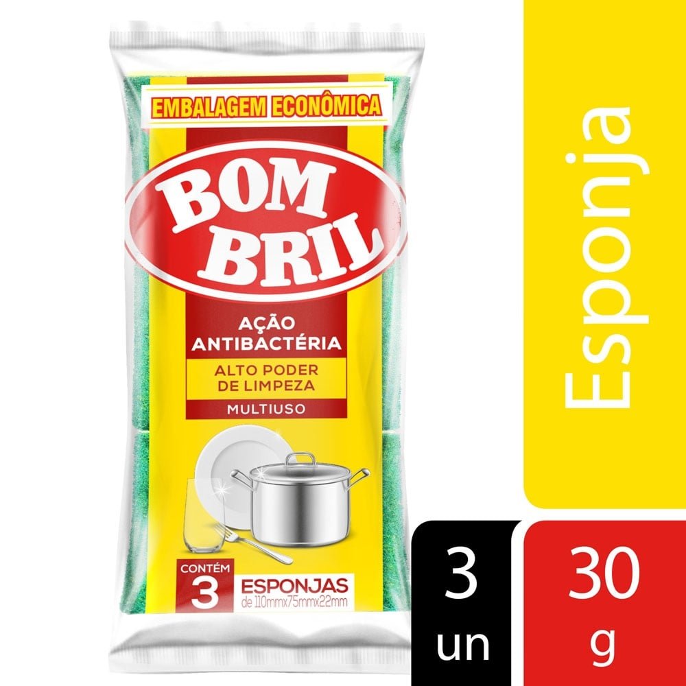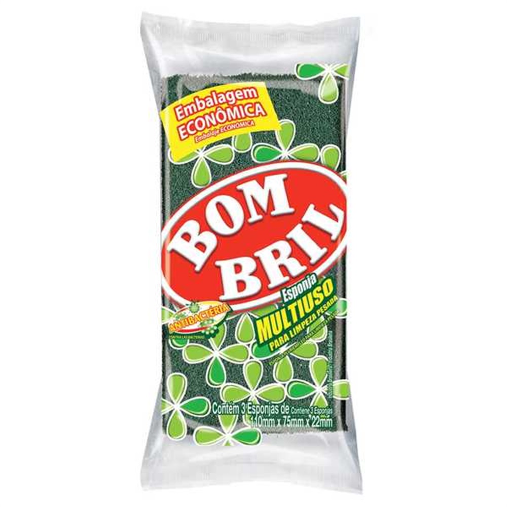 Esponja Bombril Multiuso Antibacteria Embalagem C 3 Unidades Efacil
