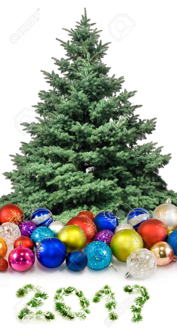 Imagem Isolada De Decoracoes Do Natal E Uma Arvore De Natal Em Um Fundo Branco Imagem De Decoracoes Bonitas Brilhantes Festivas Do Natal No Fundo Branco Lindo Cartao Para 2017 Parabens Pelo