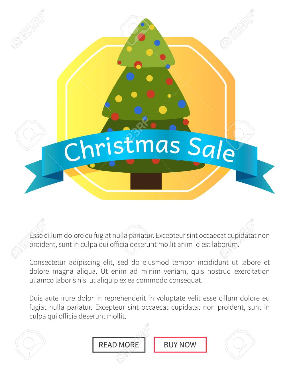 Imagens De Venda De Natal Com Bonita Ano Novo Ilustracao Vetorial De Arvore Com Texto De Anuncio Na Fita Azul Brilhante Isolada Em Botoes De Luz Padrao Amarelo Ilustraciones Vectoriales Clip Art