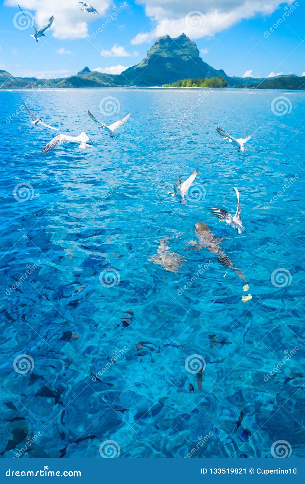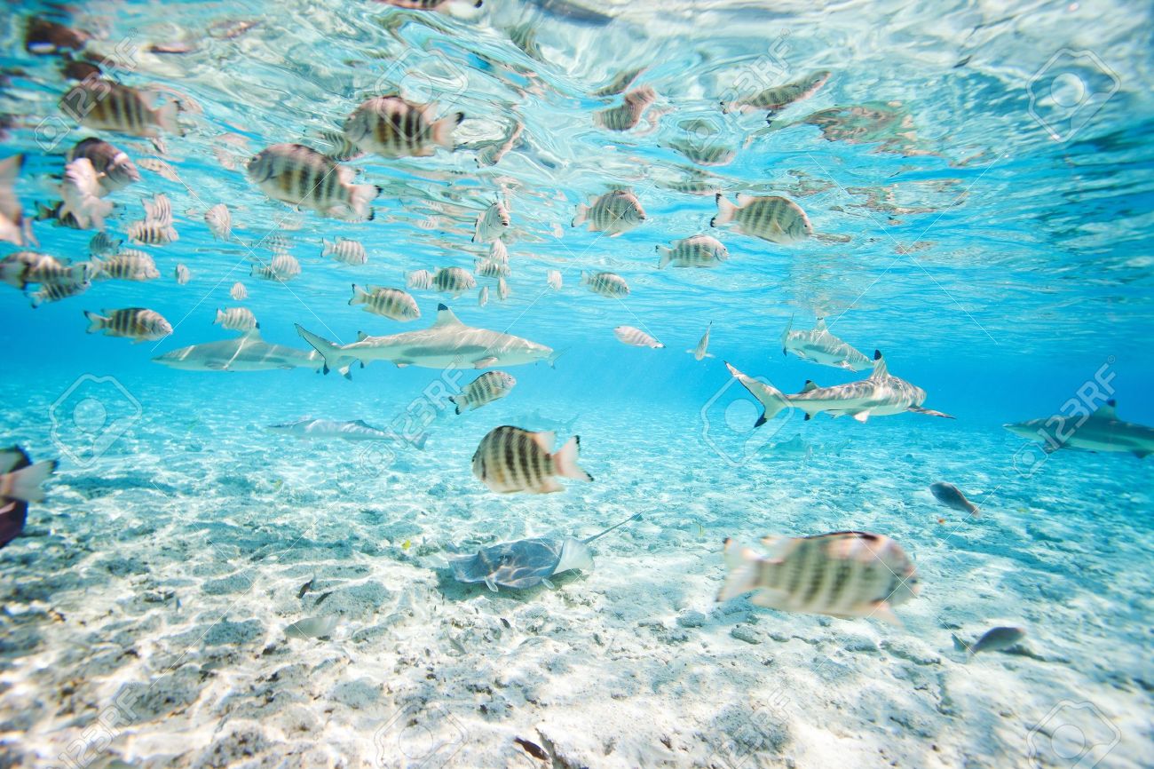 Fish And Black Tipped Sharks Underwater In Bora Bora Lagoon Banco De Imagens Royalty Free Ilustracoes Imagens E Banco De Imagens Image 16049660