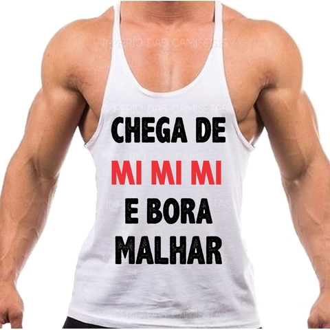 Regata Masculina Branca Academia Gym Maromba Chega De Mimimi E Bora Malhar Ref 2575