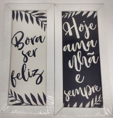 Conjunto De Quadro Moldura Branca Bora Ser Feliz Hoje Amanha E Sempre Hugart 10x25 Cm Casa De Lila Presentes