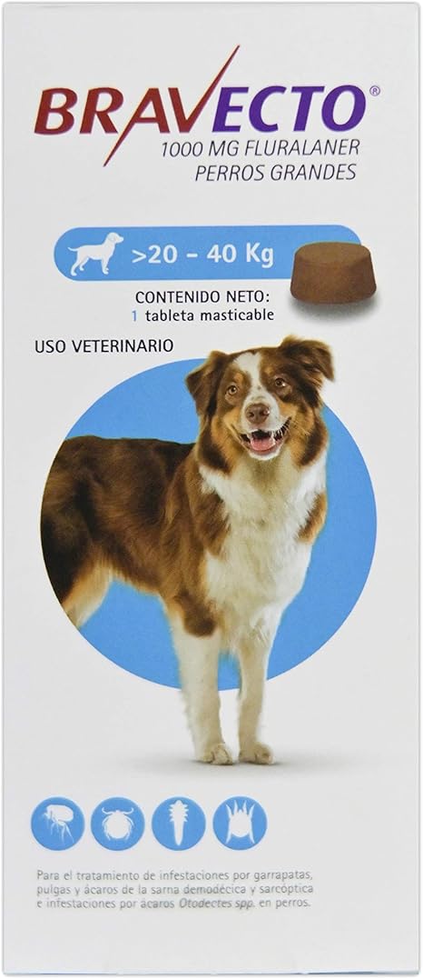 Bravecto Tratamiento Para Garrapatas Pulgas Y Acaros En Perros 20 A 40 Kg Nueva Imagen Misma Formula Una Tableta Masticable Dura 12 Semanas Msd Animal Health Amazon Com Mx Mascotas