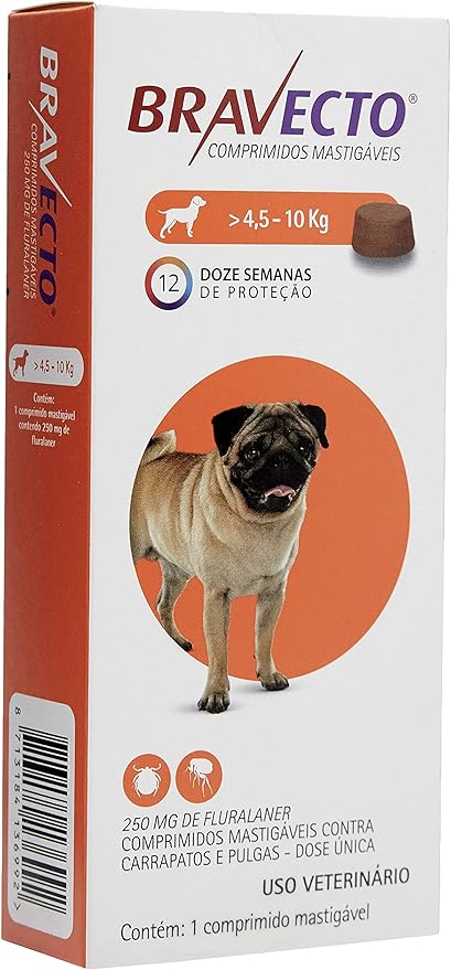 Antipulgas E Carrapatos Bravecto Para Caes De 4 5kg A 10kg 250mg Alimentos E Racoes Extra 16293401