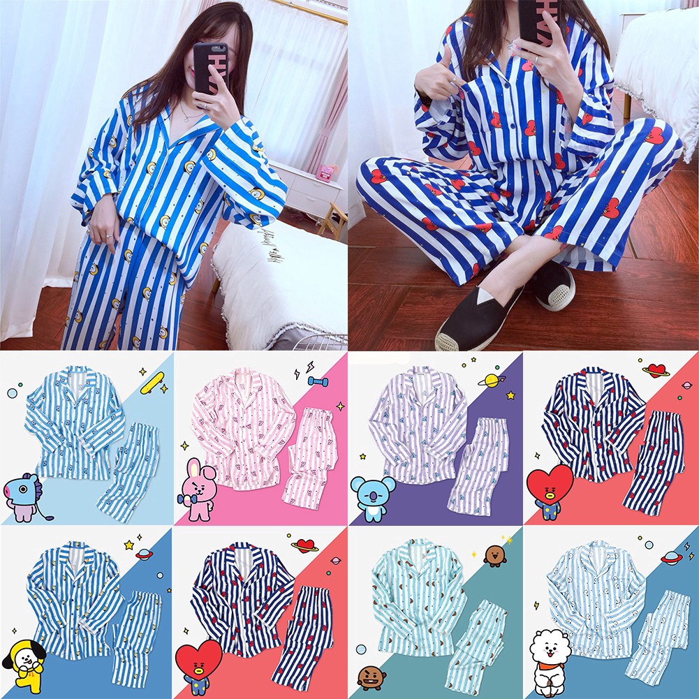 2 Pecas Pijama Fofo De Desenho Kpop Bts Bt21 Com Manga Comprida Uso Noturno Uso Noturno Shopee Brasil