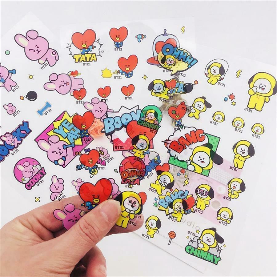 Kpop Bts Bt21 Cartoon Laser Colorful Stickers For Laptop Cup Mobile Phone Stickers Shopee Malaysia