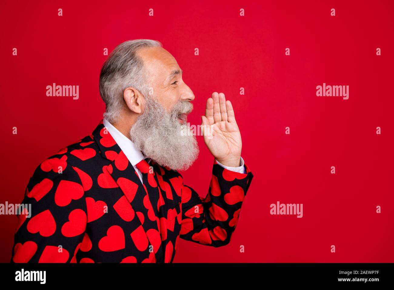 Cerrar Perfil Vista Lateral De Su Retrato Que Bonito Atractivo Alegre Alegre Hombre Canoso Barbudo Diciendo Buenas Noticias Asesoramiento Ad Anuncio Aislado En Fotografia De Stock Alamy