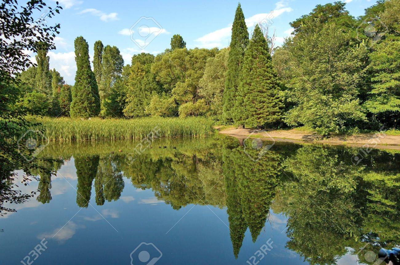 Beautiful Landscape With Reflection In South Park Sofia Bulgaria Banco De Imagens Royalty Free Ilustracoes Imagens E Banco De Imagens Image 19159585