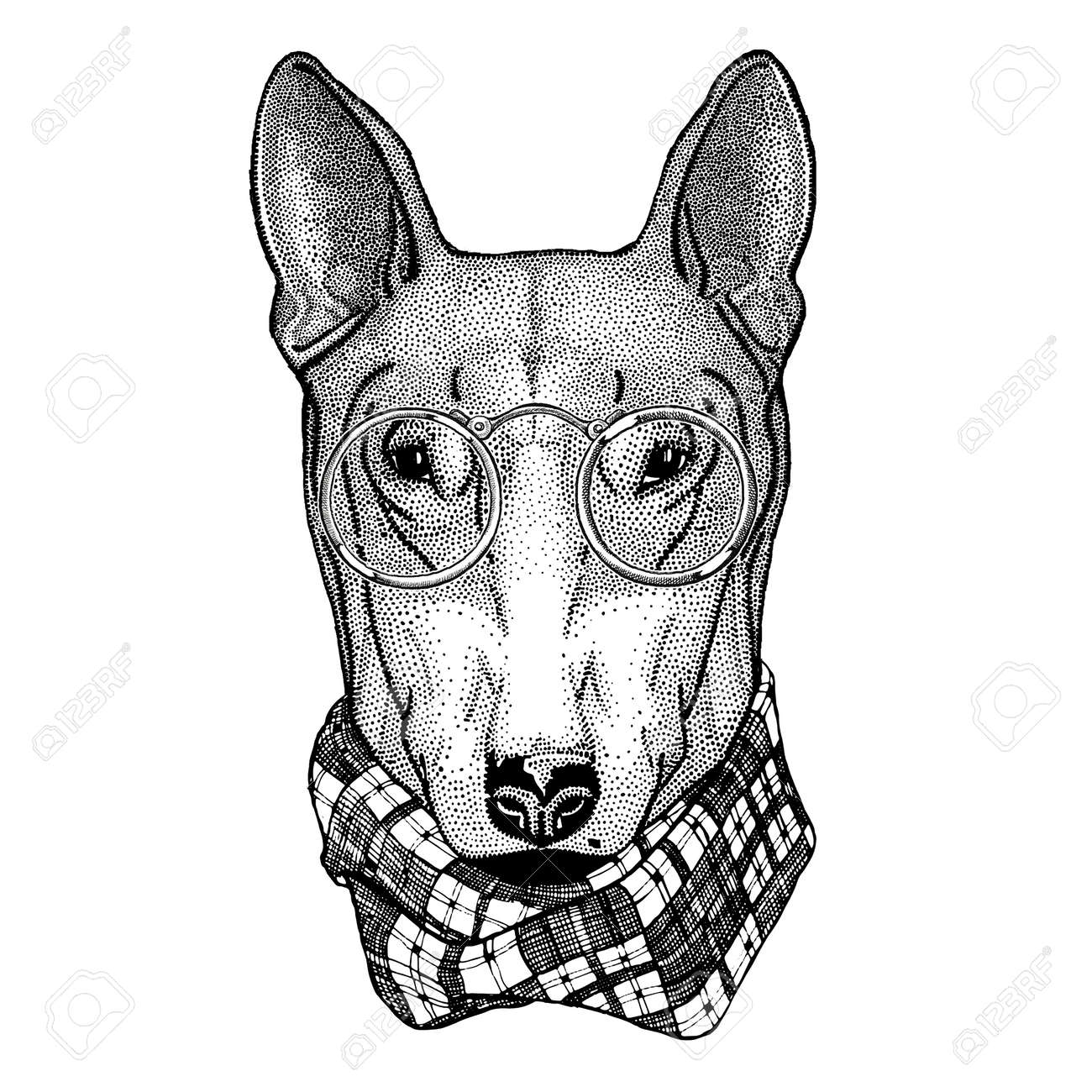 Perro Hipster Bull Terrier Imagen Para Tatuaje Emblema Diseno De Placa Fotos Retratos Imagenes Y Fotografia De Archivo Libres De Derecho Image 74782192