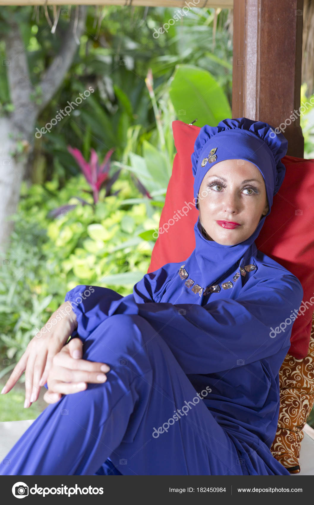 Attractive Woman Muslim Swimwear Burkini Garden Stock Photo C Kkulikov 182450984