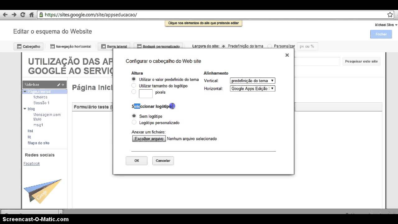 Licao 2 Curso Google Sites Personalizar O Cabecalho Da Pagina Inicial Youtube