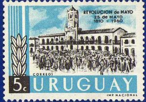 Stamp Revolutionaries At Cabildo Of Buenos Aires 1810 Uruguay 150th Anniv Of The May Revolution Of 1810 Mi Uy 891 Sn Uy 658 Yt Uy 680 Sg Uy 1154 Cia Uy 680
