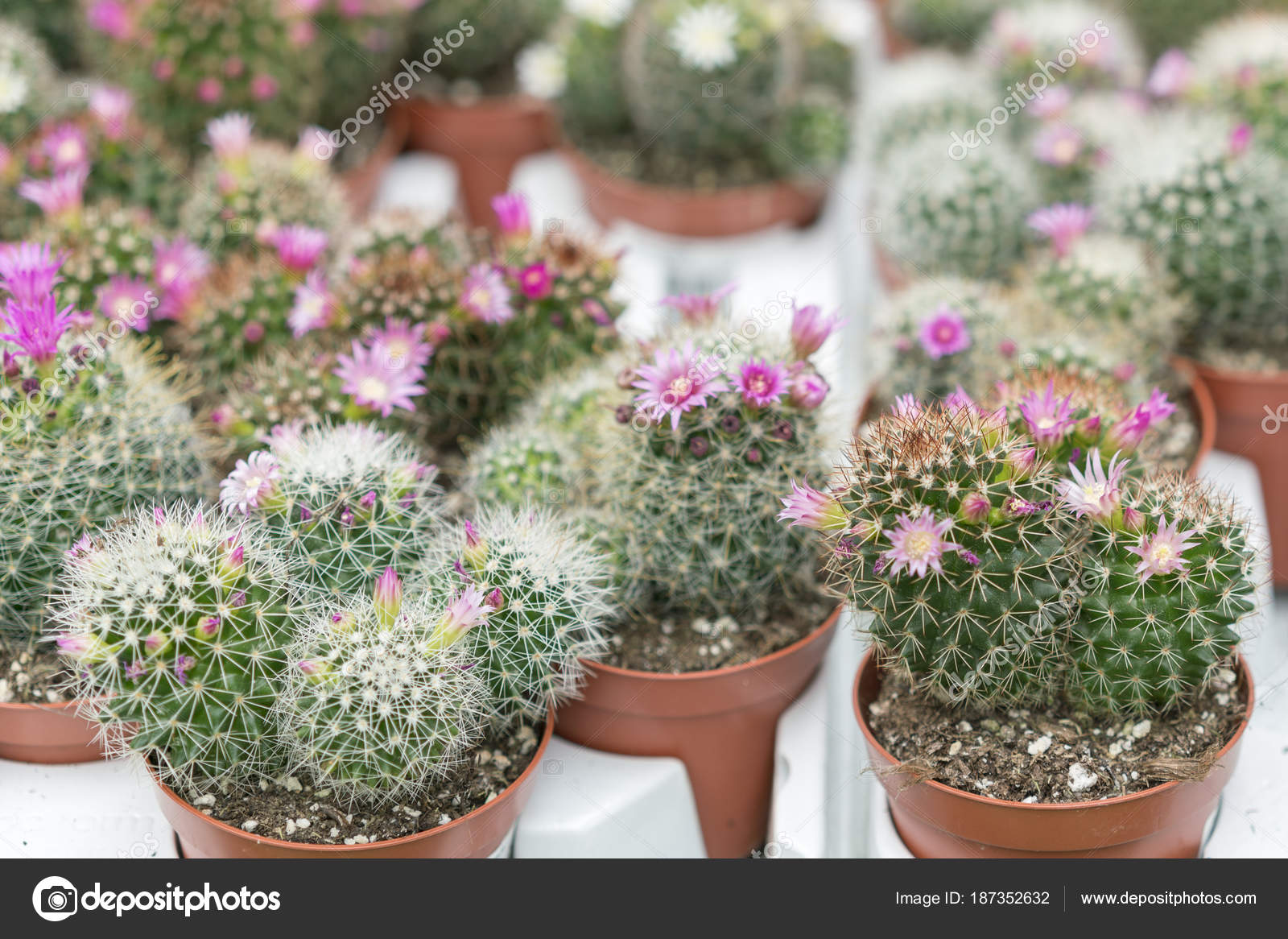 Criacao De Cactos Flores De Cacto Em Vaso De Plastico Em Cacto Farm Sh Stock Photo C Tete Escape 309451904