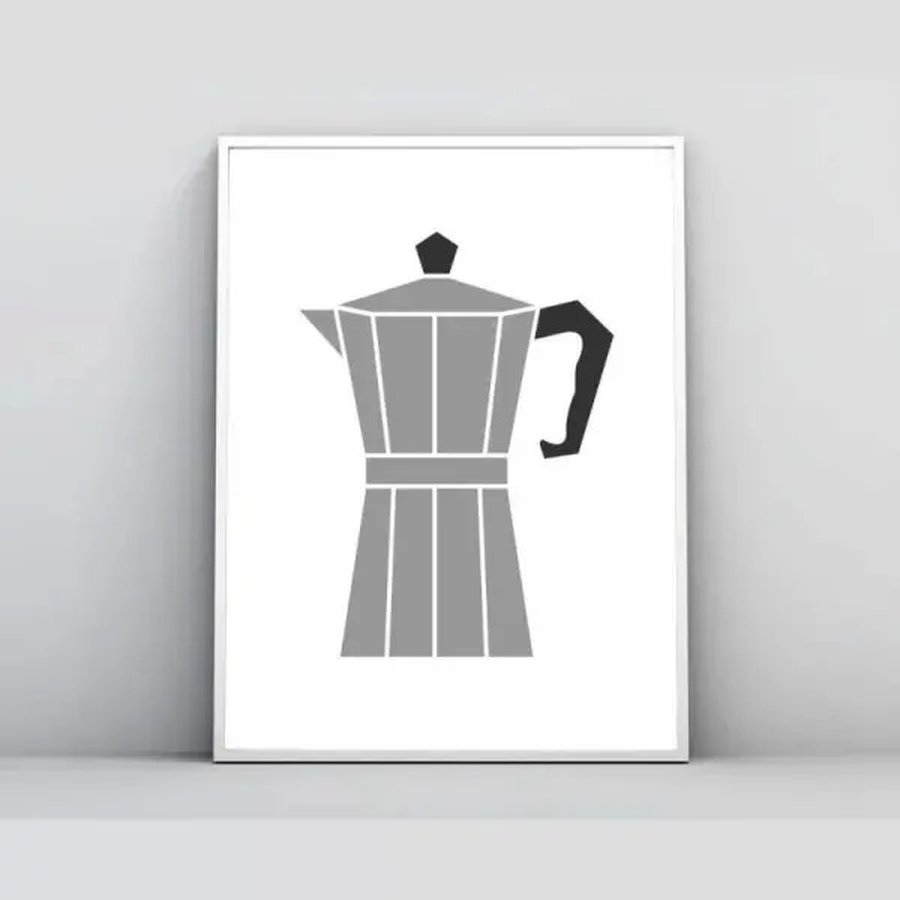 Quadro Com Moldura Cozinha Cafe Cafeteira Cinza Madeiramadeira