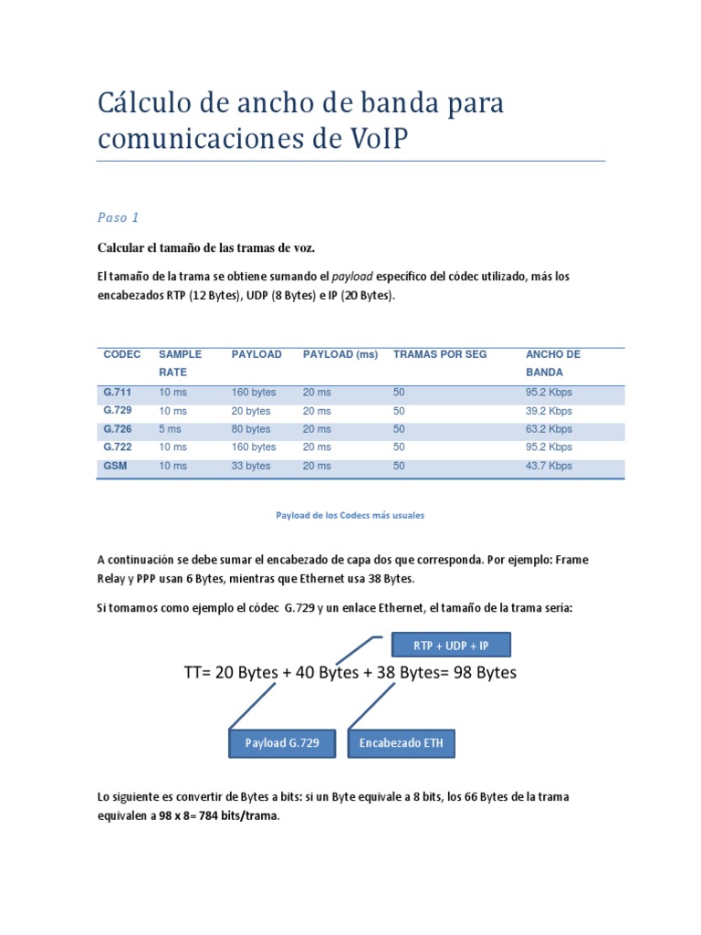 Calculo De Ancho De Banda Para Comunicaciones De Voip Docx