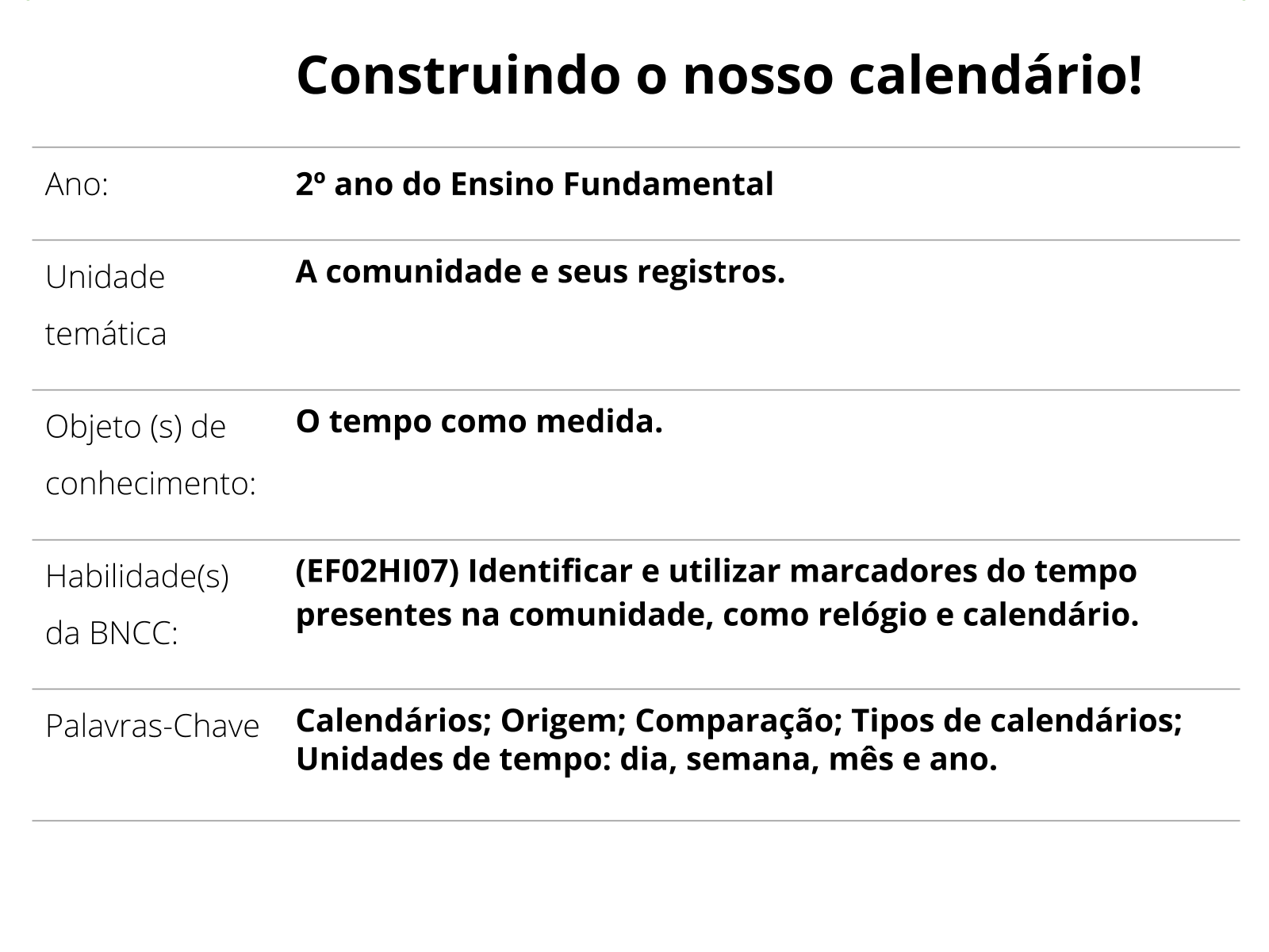 Plano De Aula 2º Ano Historia Construindo O Nosso Calendario