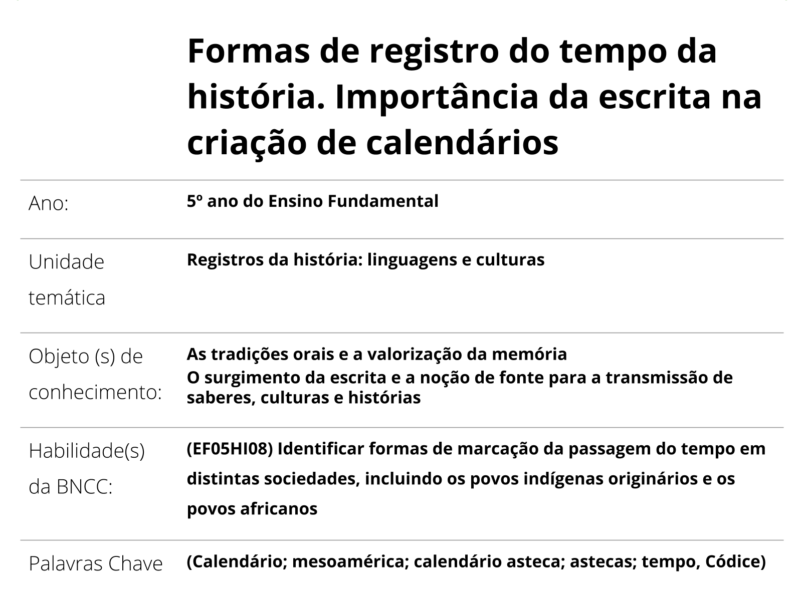 Plano De Aula 5º Ano Historia Formas De Registro Do Tempo Da Historia Importancia Da Escrita Na Criacao De Calendarios