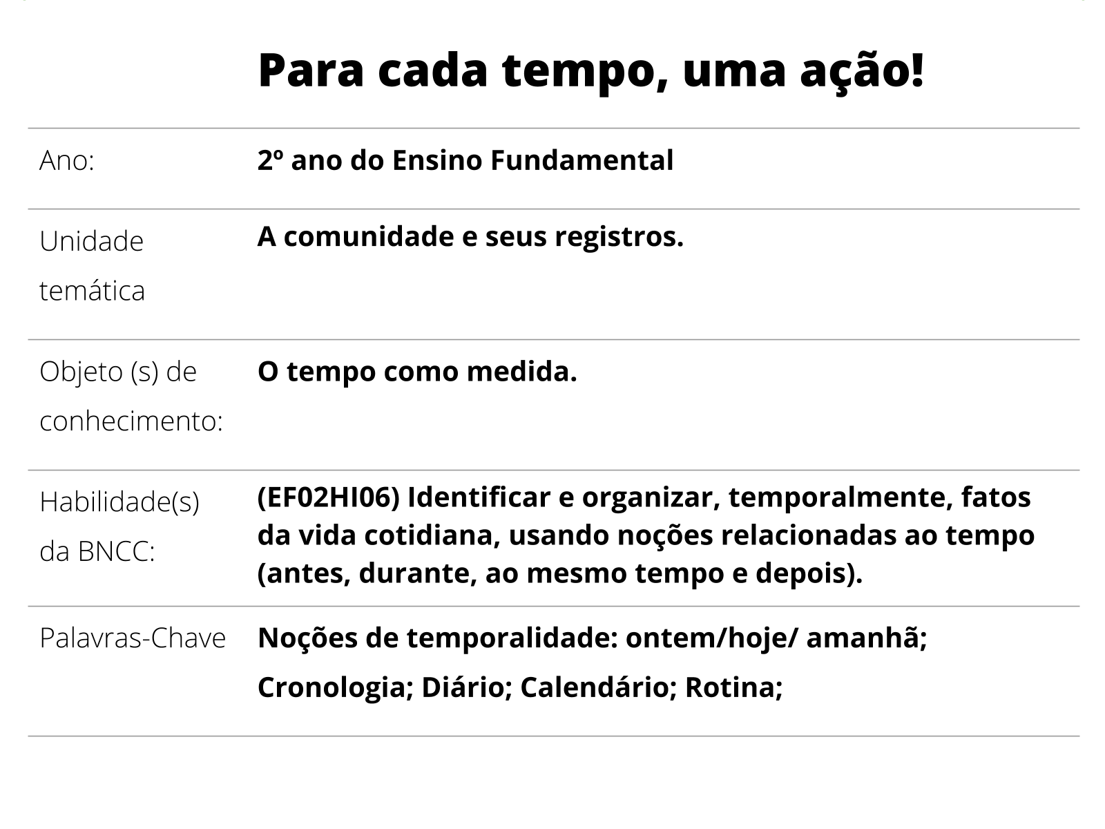 Plano De Aula 2º Ano Historia Para Cada Tempo Uma Acao