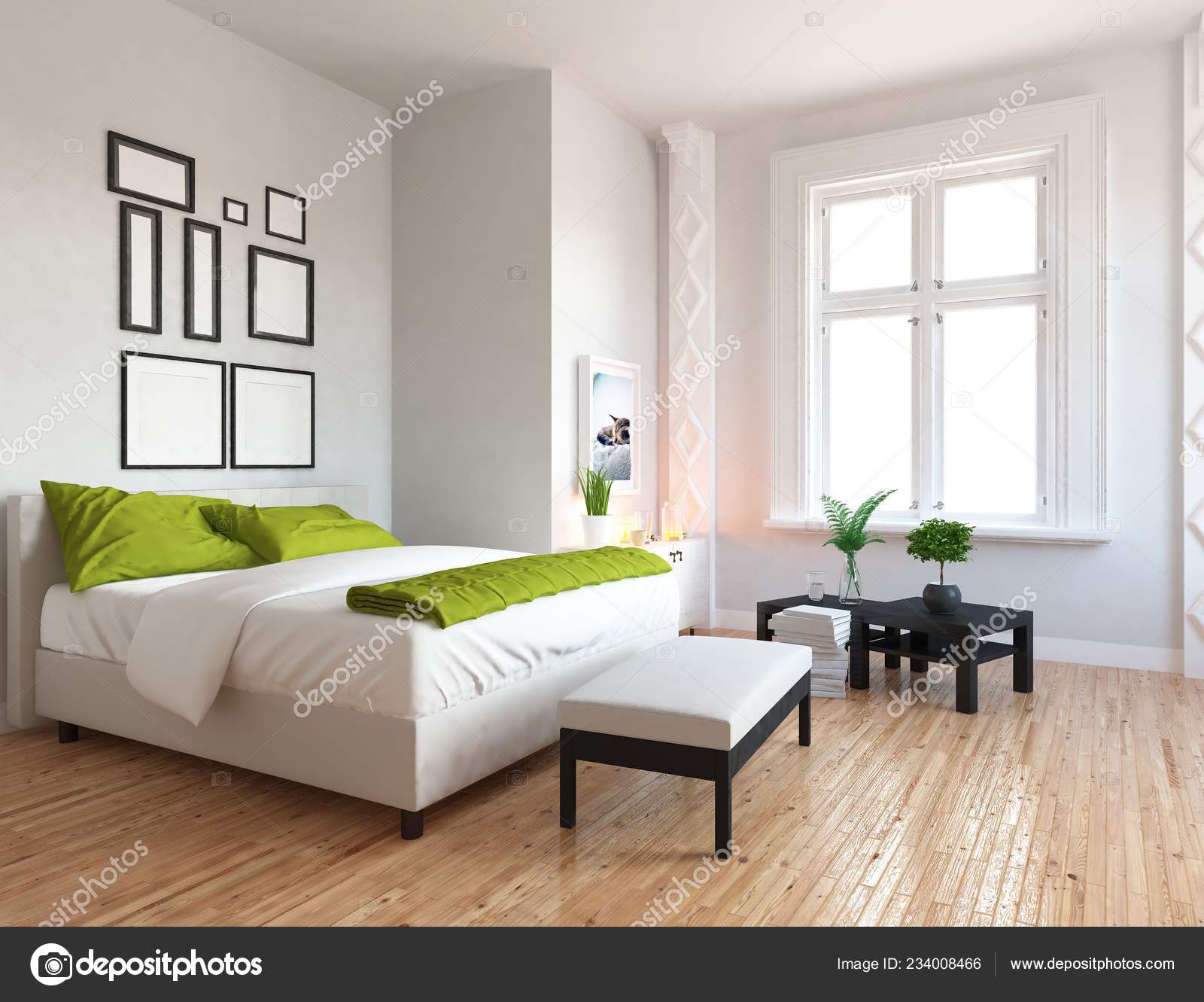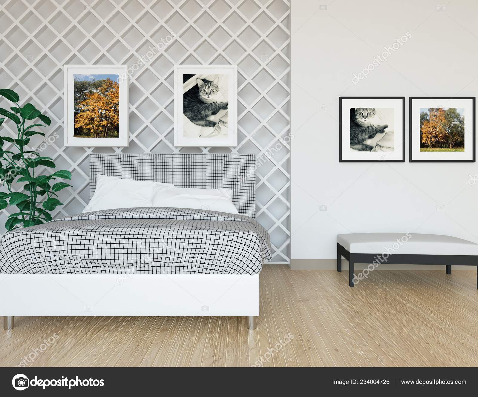 Ideia Interior Quarto Escandinavo Com Cama Casal Imagens Grande Parede Stock Photo C Pavelshinkarev87 Gmail Com 234008466