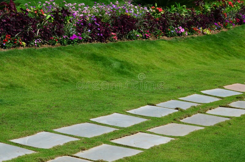 Caminho De Pedra Quadrado No Jardim Foto De Stock Imagem De Quadrado Jardim 90624280