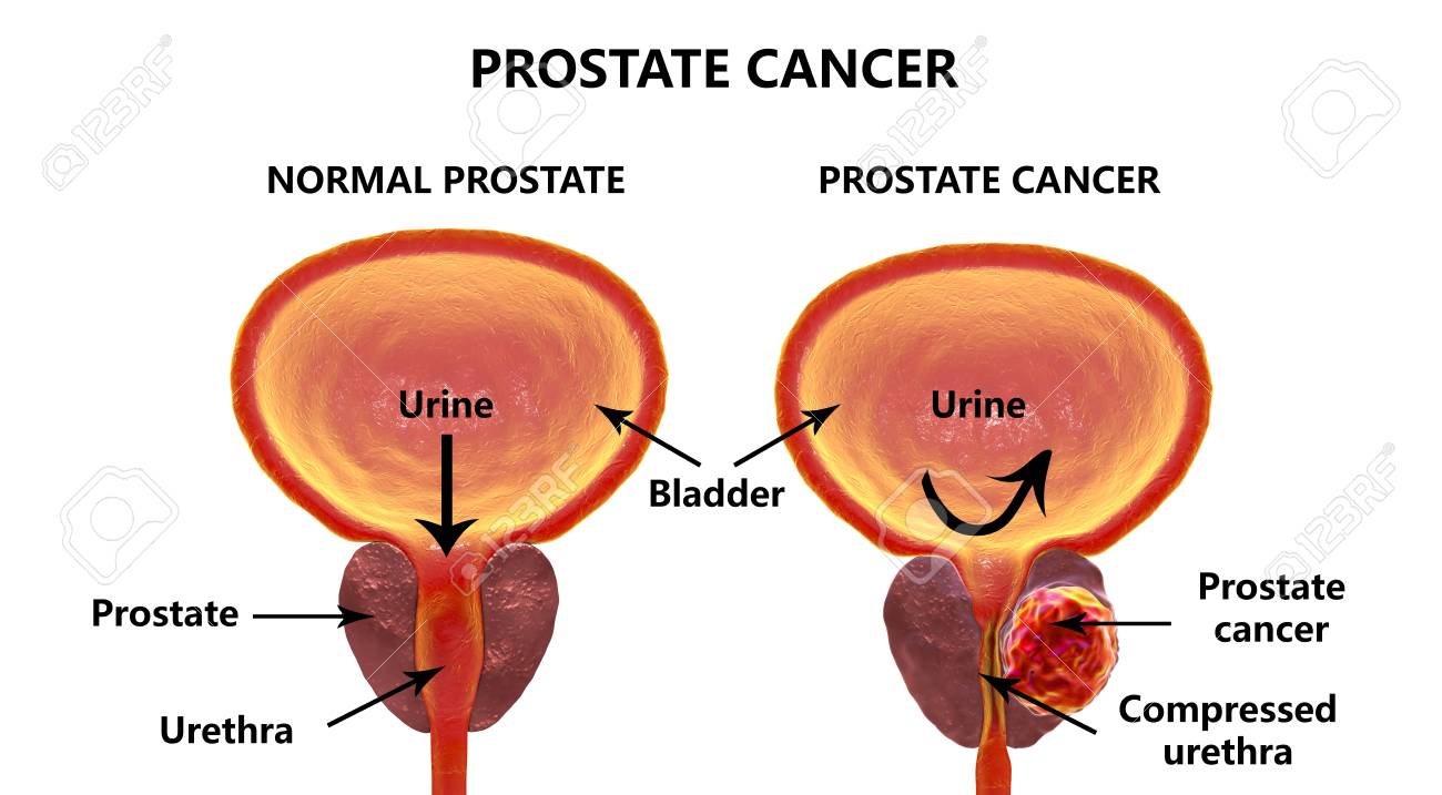 Cancer De Prostata Ilustracion 3d Que Muestra La Glandula Prostatica Normal Y Presencia De Tumor Dentro De La Prostata Que Comprime La Uretra Fotos Retratos Imagenes Y Fotografia De Archivo Libres De
