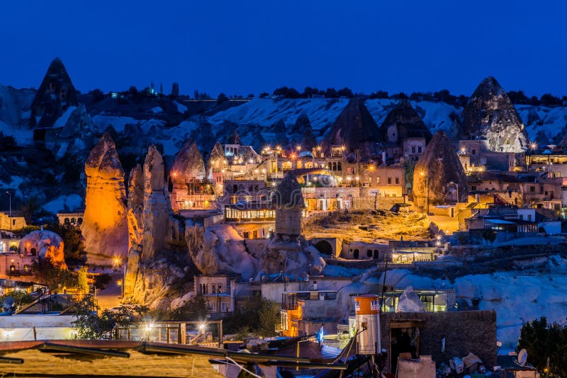 Foto De Aldeia De Goreme Na Capadocia A Noite Na Turquia E Mais Fotos De Stock De Aldeia Istock