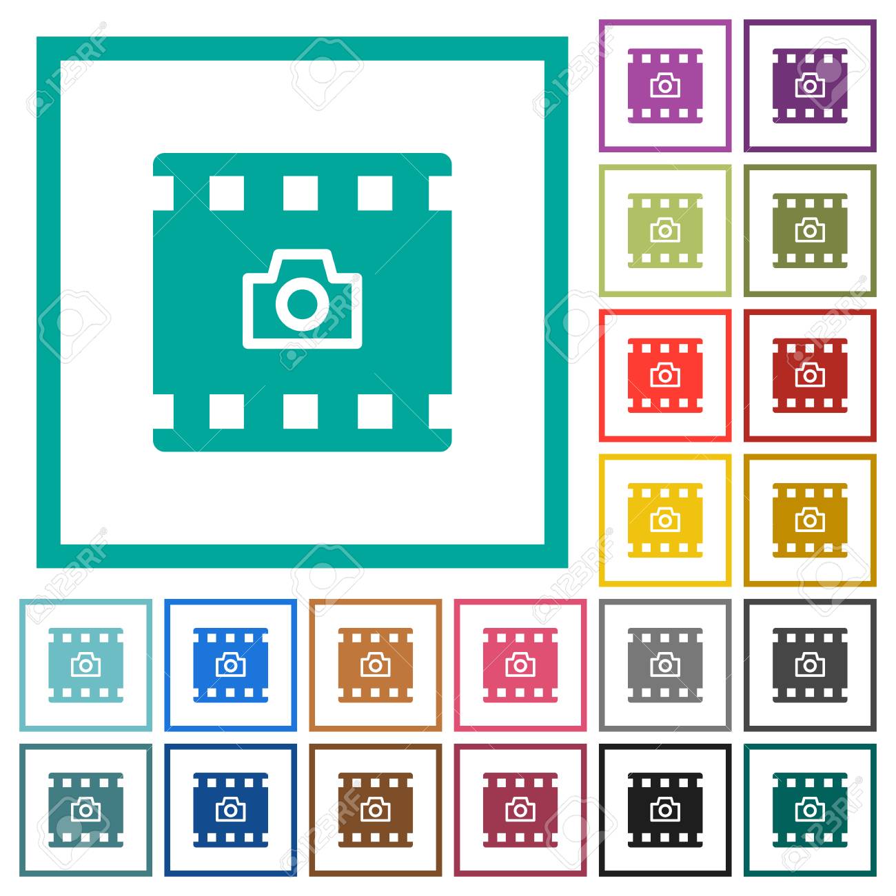 Capture La Imagen De Los Iconos De Color Plano De Pelicula Con Marcos De Cuadrante Sobre Fondo Blanco Ilustraciones Vectoriales Clip Art Vectorizado Libre De Derechos Image 96590062