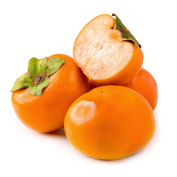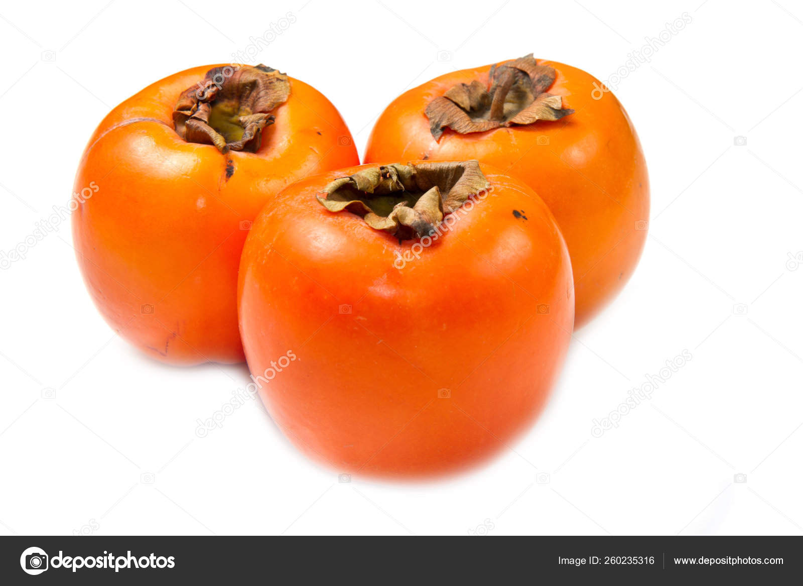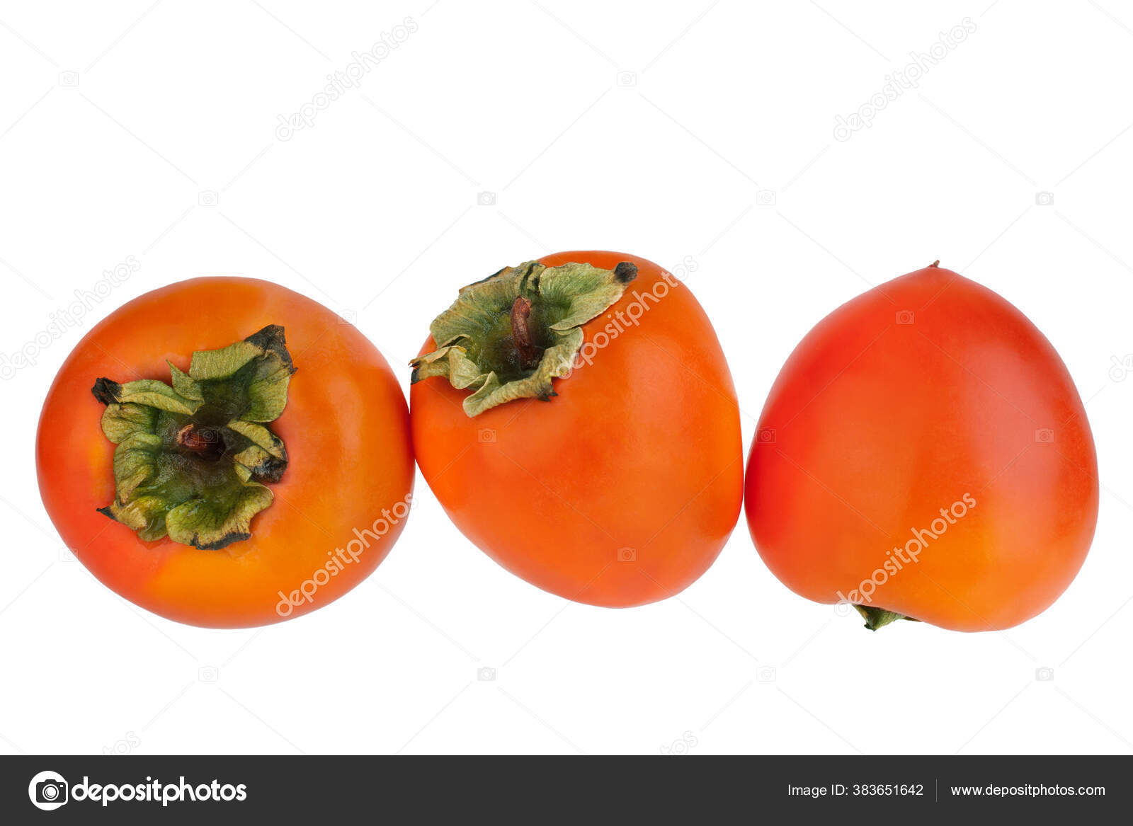 Tres Frutos Laranja Caqui Inteiro Com Folhas Verdes Fundo Branco Fotos Imagens De C Verashestak 383651642