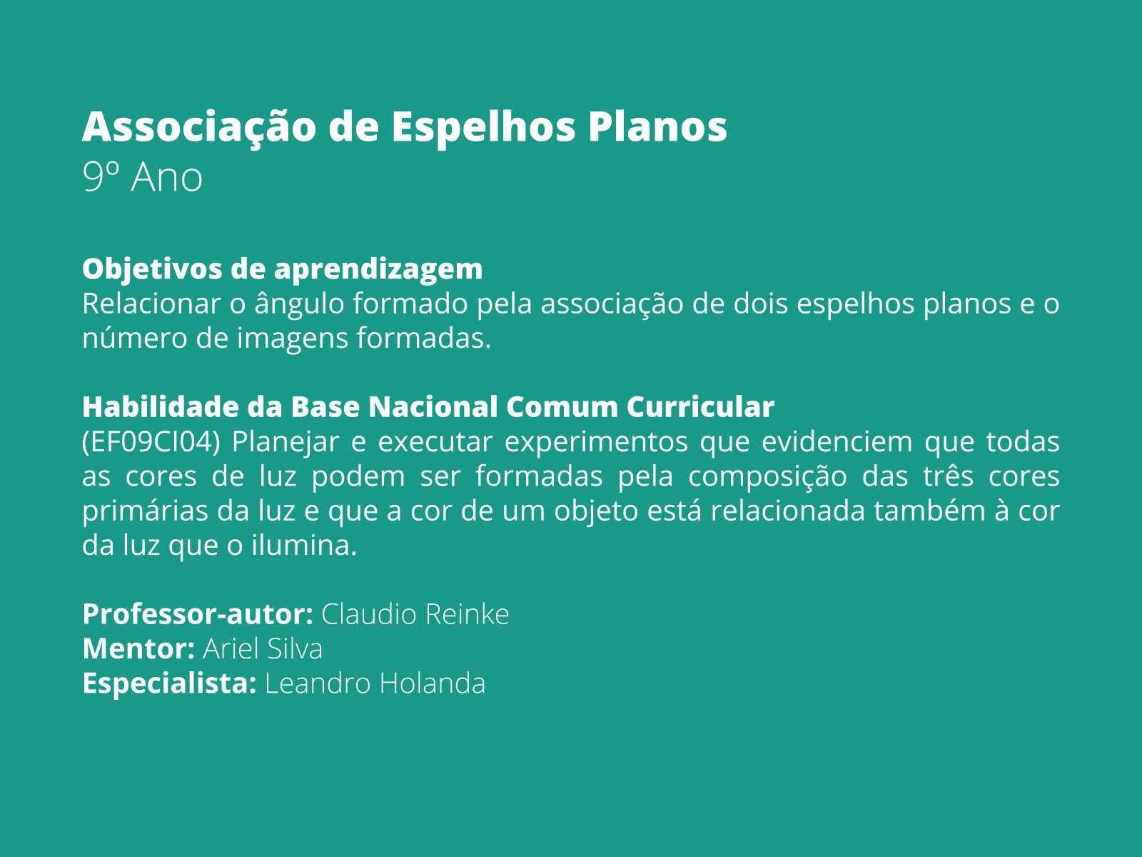 Plano De Aula 9º Ano Ciencias Associacao De Espelhos Planos