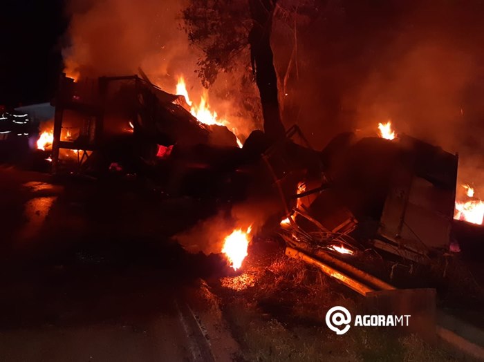 Imagens Do Incendio Na Br 364 Apos Uma Carreta Tombar Veja Agora Mt