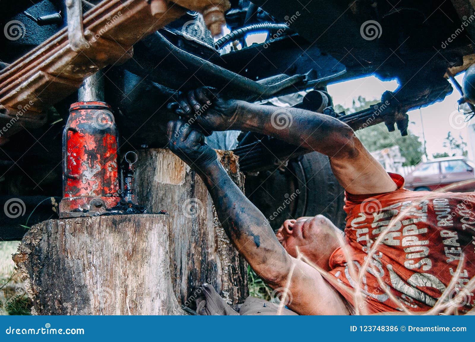 Mecanico Que Fixa Um Carro Fora Com Maos Sujas Foto Editorial Imagem De Mecanico Sujas 123748386