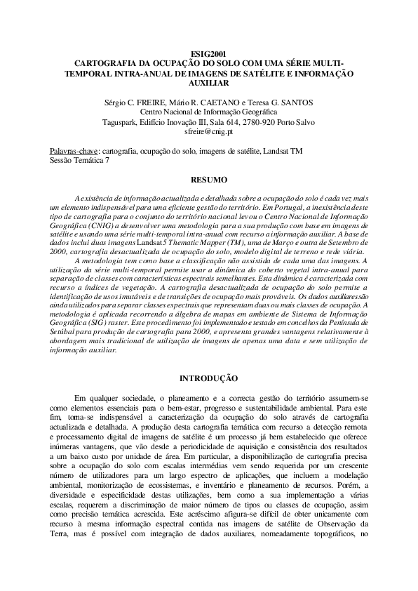 Pdf Cartografia Da Ocupacao Do Solo Com Uma Serie Multi Temporal Intra Anual De Imagens De Satelite E Informacao Auxiliar Sergio Freire Academia Edu