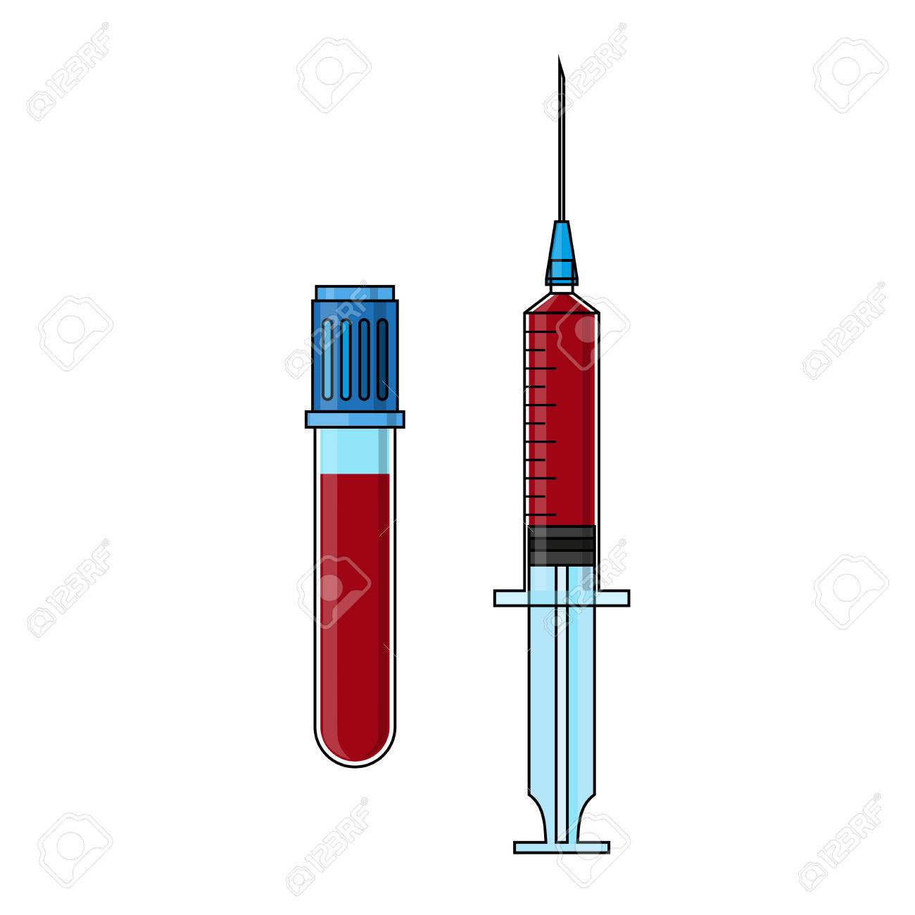 Syringe Injection And Blood Test Tube Vector Illustration In Cartoon Style Isolated On White Background Royalty Free Cliparts Vetores E Ilustracoes Stock Image 65733417