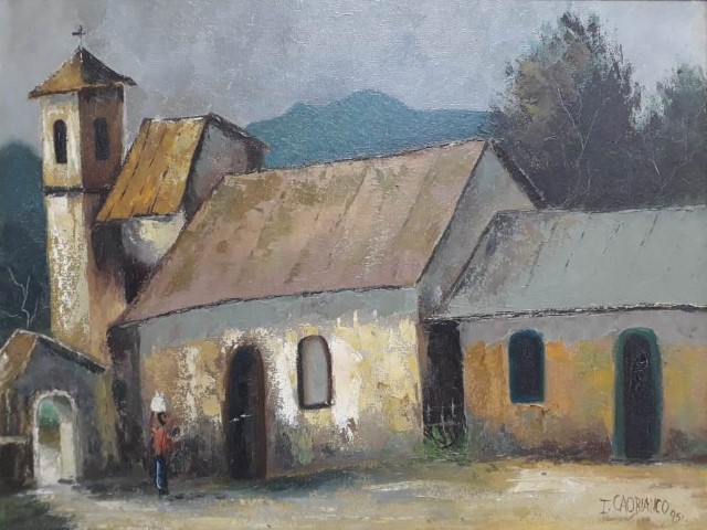 T Olteano Paisagem Com Casebres Oleo Sobre Tela As