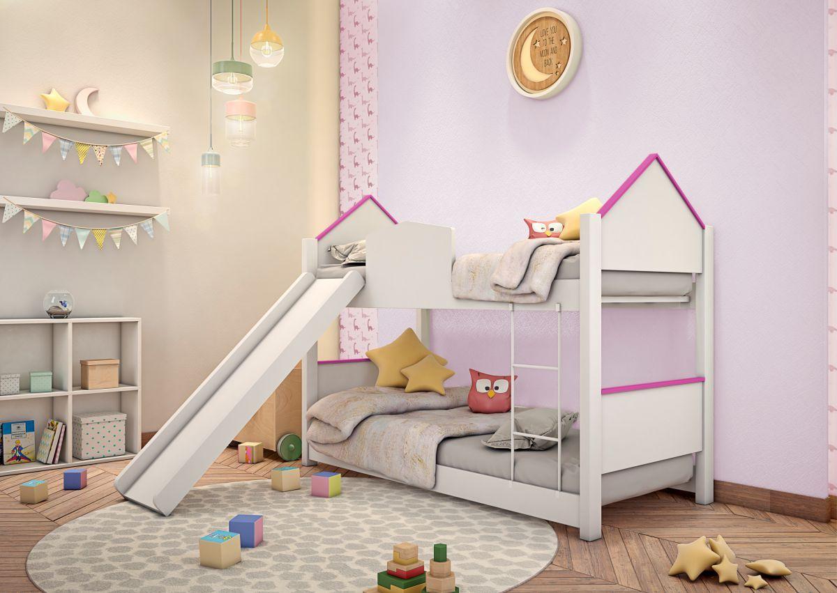 Beliche Mini Cama Casinha Adesivada Branca E Rosa Com Escorregador Mais De Casa Beliche Infantil Magazine Luiza