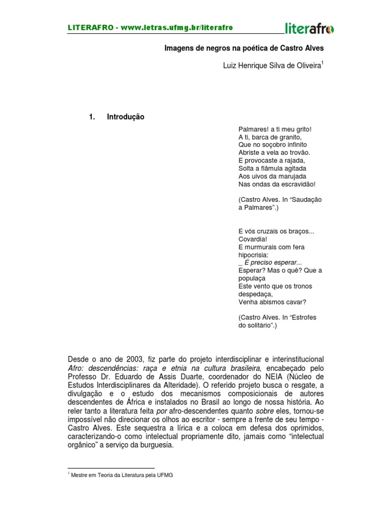 A Negritude E A Brasilidade Nas Obras De Castro Alves E Abdias Nascimento Ctb