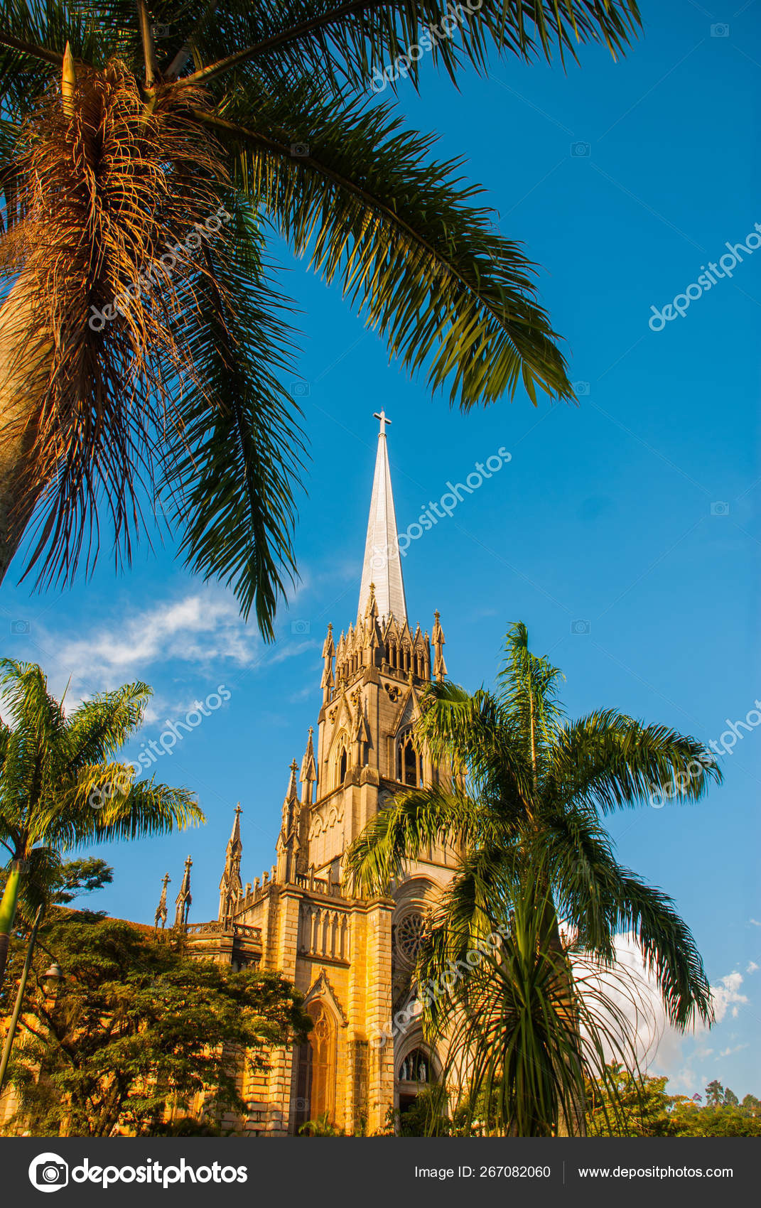 Petropolis Rio De Janeiro Brasil Catedral De La Petropolis Iglesia De San Pedro Neogotico Catedral Catolica Y Palmeras Sobre Fondo Azul Del Cielo Foto De Stock C A1804 267082060