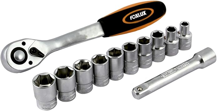 Kit Chave Soquete Foxlux Jogo Chave Catraca Soquetes Extensao Barra Encaixe De 12 Pecas Aco Cromo Vanadio 57 01 Amazon Com Br