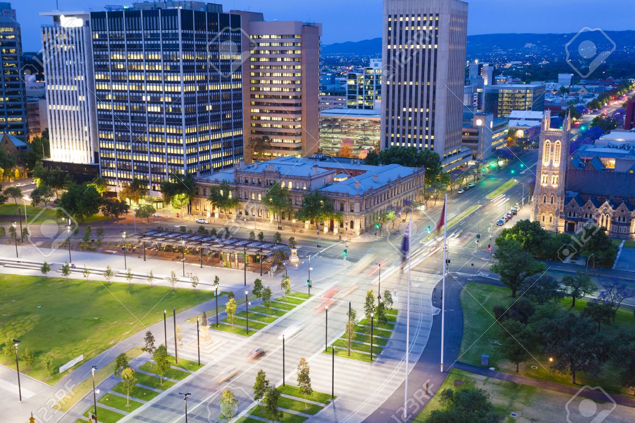 Vista Del Centro De La Ciudad De Adelaida Australia Del Sur En El Crepusculo Fotos Retratos Imagenes Y Fotografia De Archivo Libres De Derecho Image 35097909