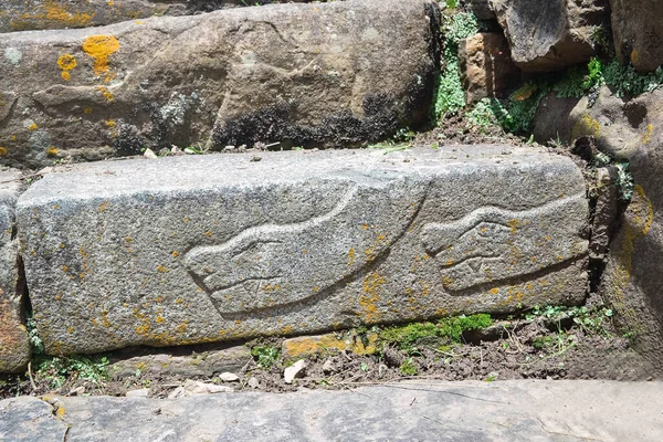 Stone Tenon At Chavin De Huantar Ruins Depicting A Half Human Stock Photo Alamy