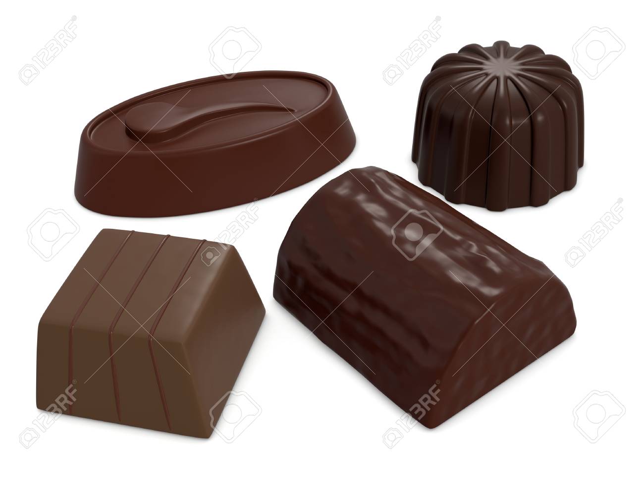 Four Chocolates Of Different Shapes 3d Render Banco De Imagens Royalty Free Ilustracoes Imagens E Banco De Imagens Image 34381246