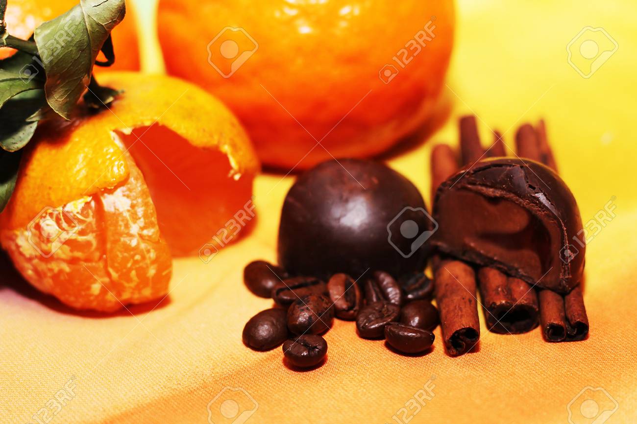 Orange And Cinnamon Sticks Sweet Dark Chocolates Banco De Imagens Royalty Free Ilustracoes Imagens E Banco De Imagens Image 70815486