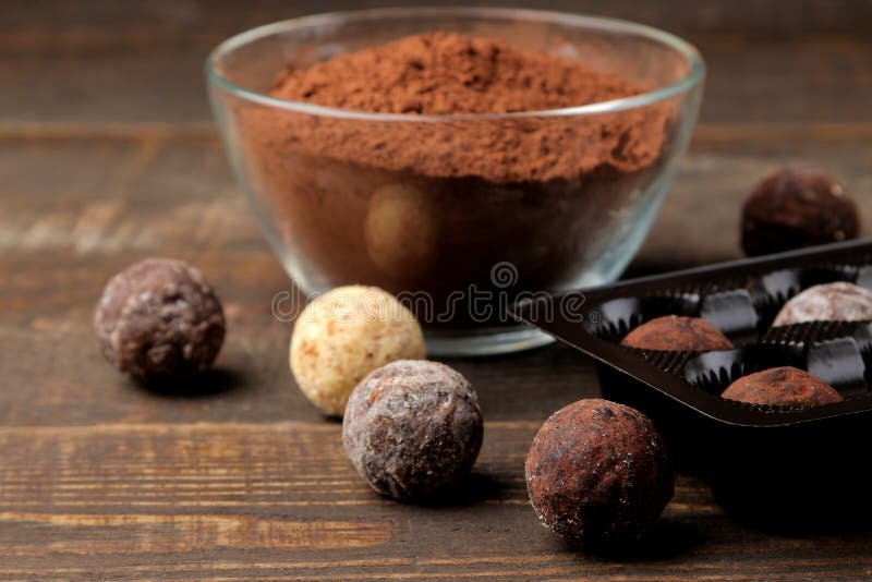 Chocolates Assorted Bolas Dos Doces De Tipos Diferentes De Chocolate Em Um Fundo Do Betao Leve Cacau Anis De Estrela E Feijao De Foto De Stock Imagem De Doces Betao 141951254