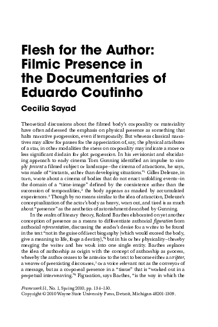 Pdf Flesh For The Author Filmic Presence In The Documentaries Of Eduardo Coutinho
